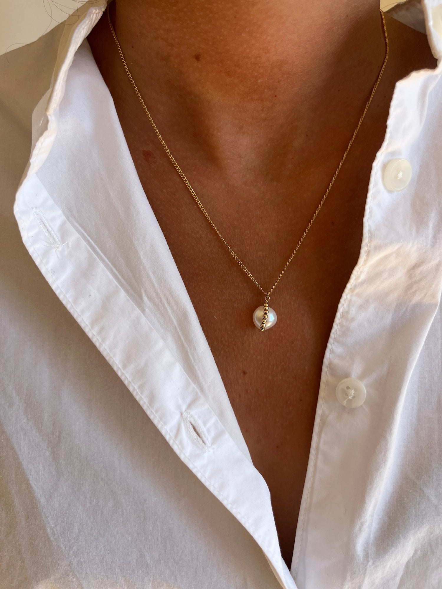 Le collier Elise est fin et élégant. Porté plus long, il s'associe parfaitement avec le collier Clem, plus court et coloré.