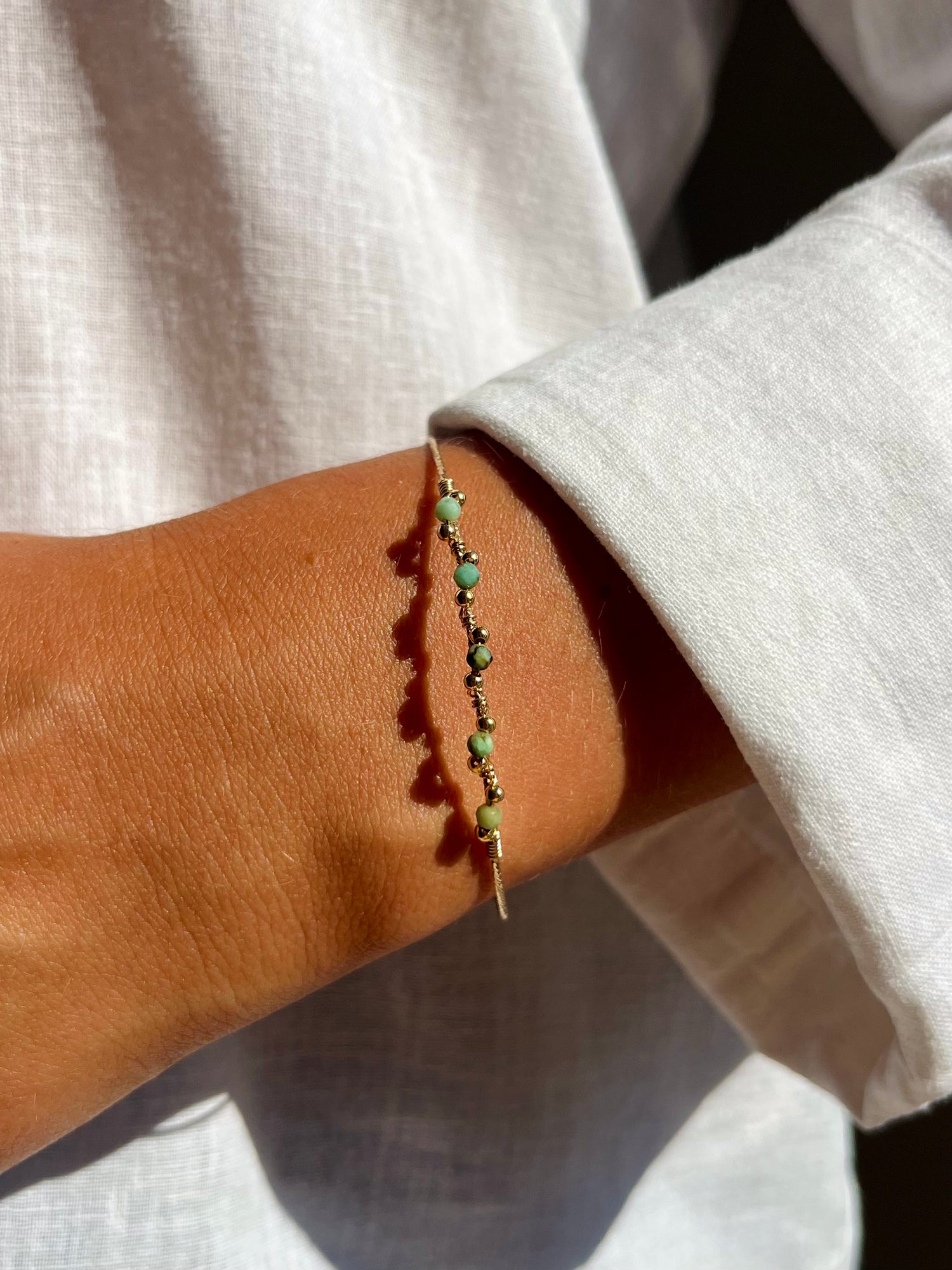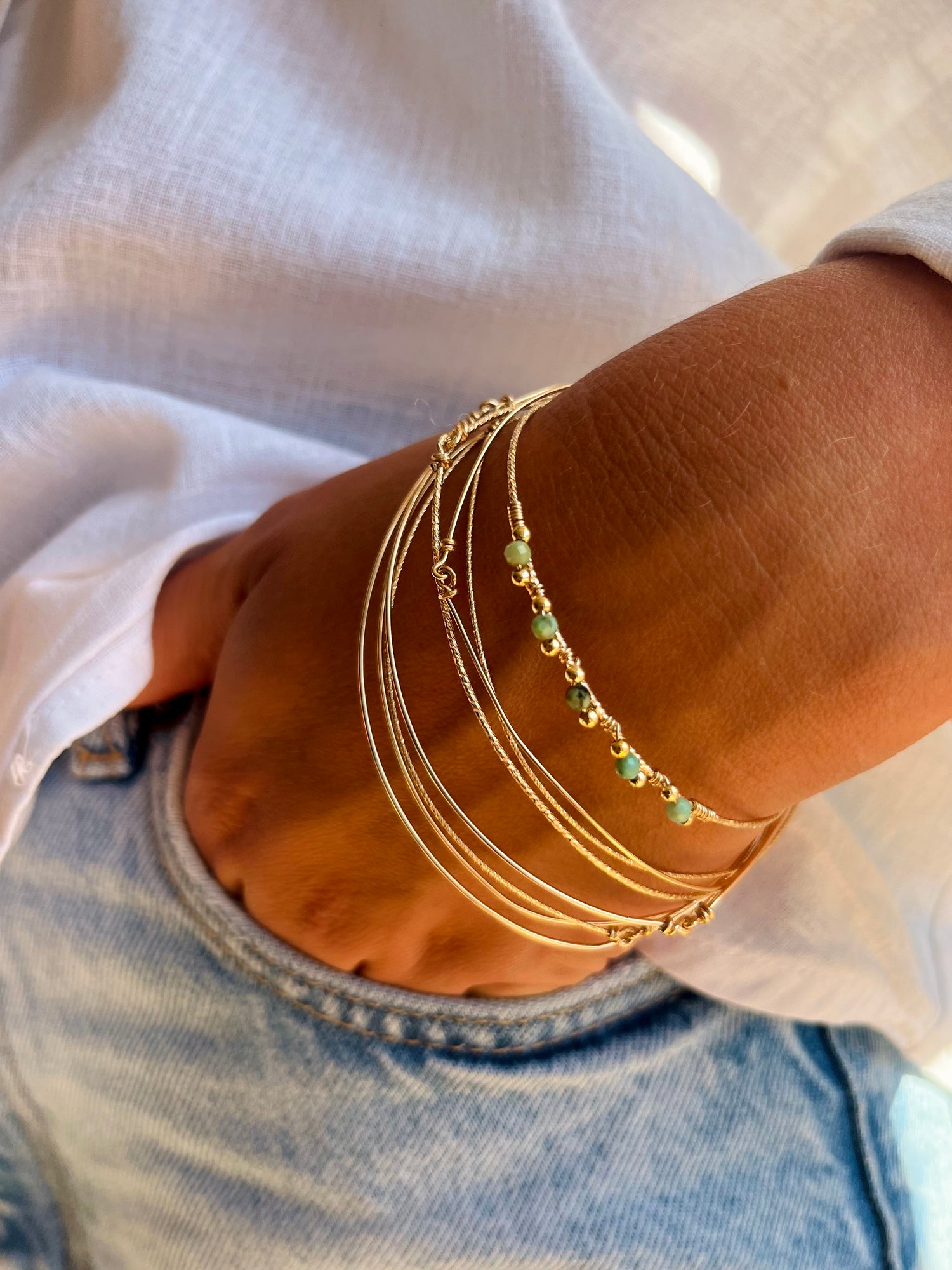 Bracelet jonc en Gold Filled avec pierres fines tissées à la main.