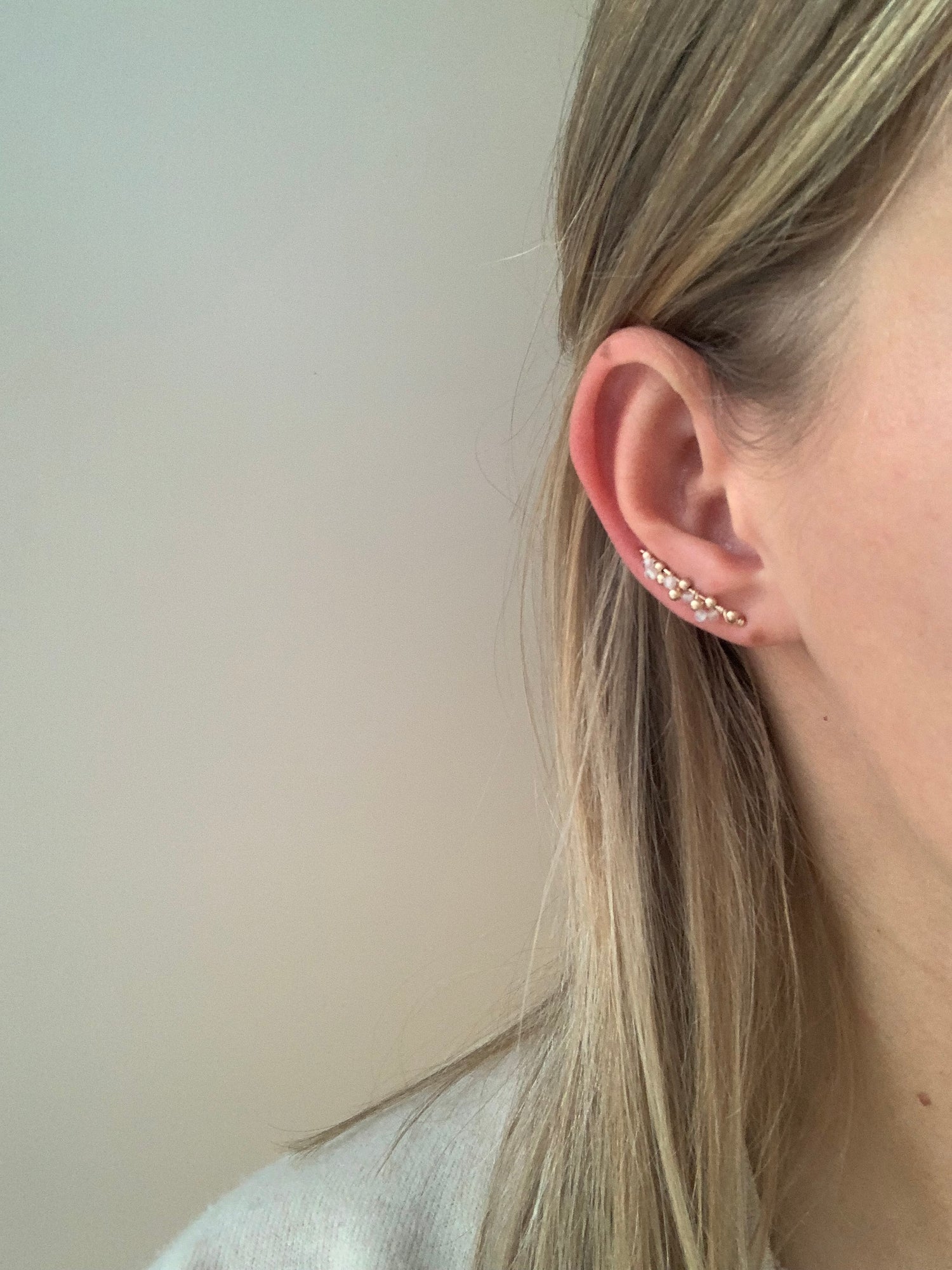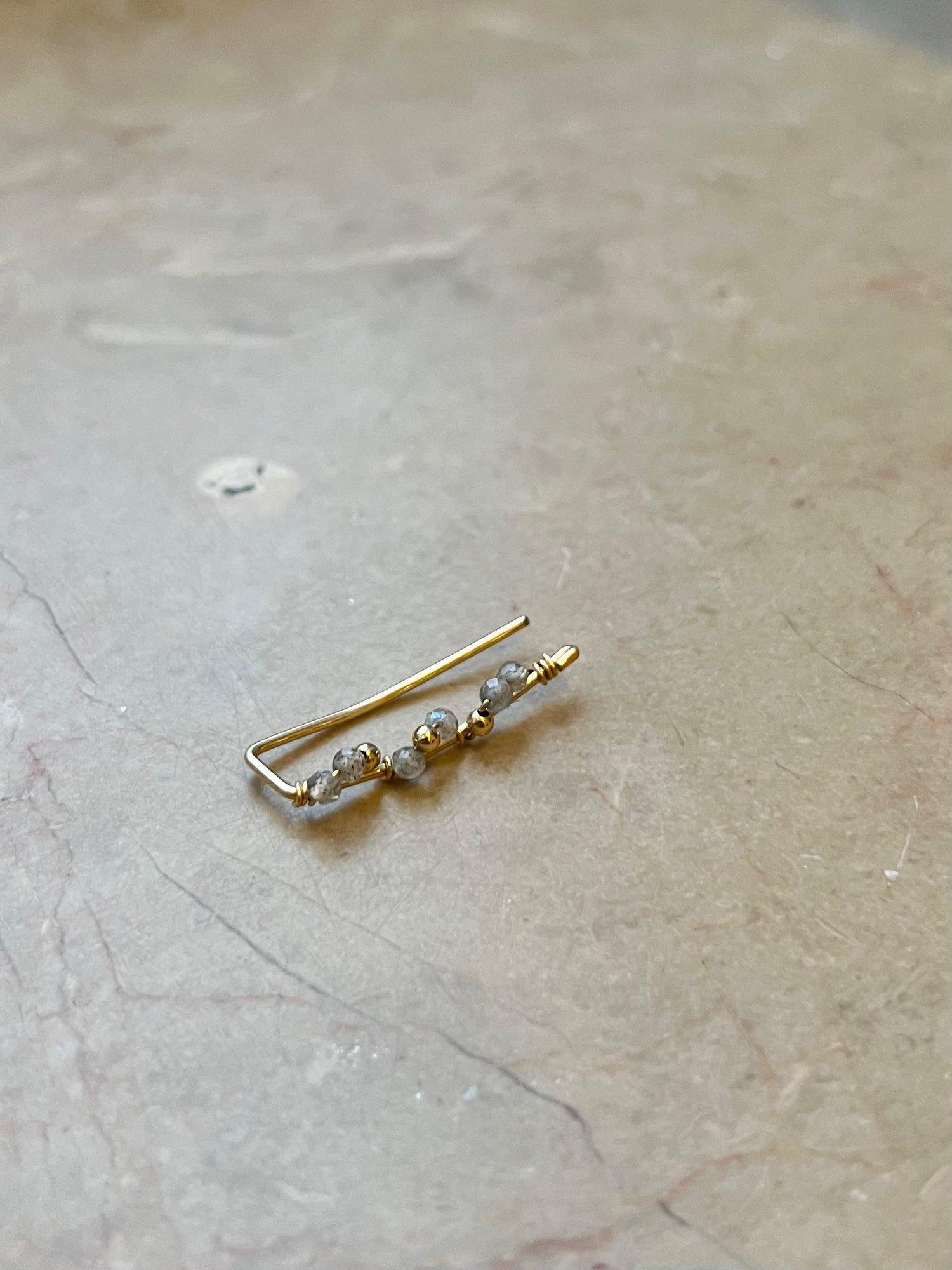La boucle d’oreille Olga en GoldFilled et pierres fines résiste à l’eau, au savon et au parfum.