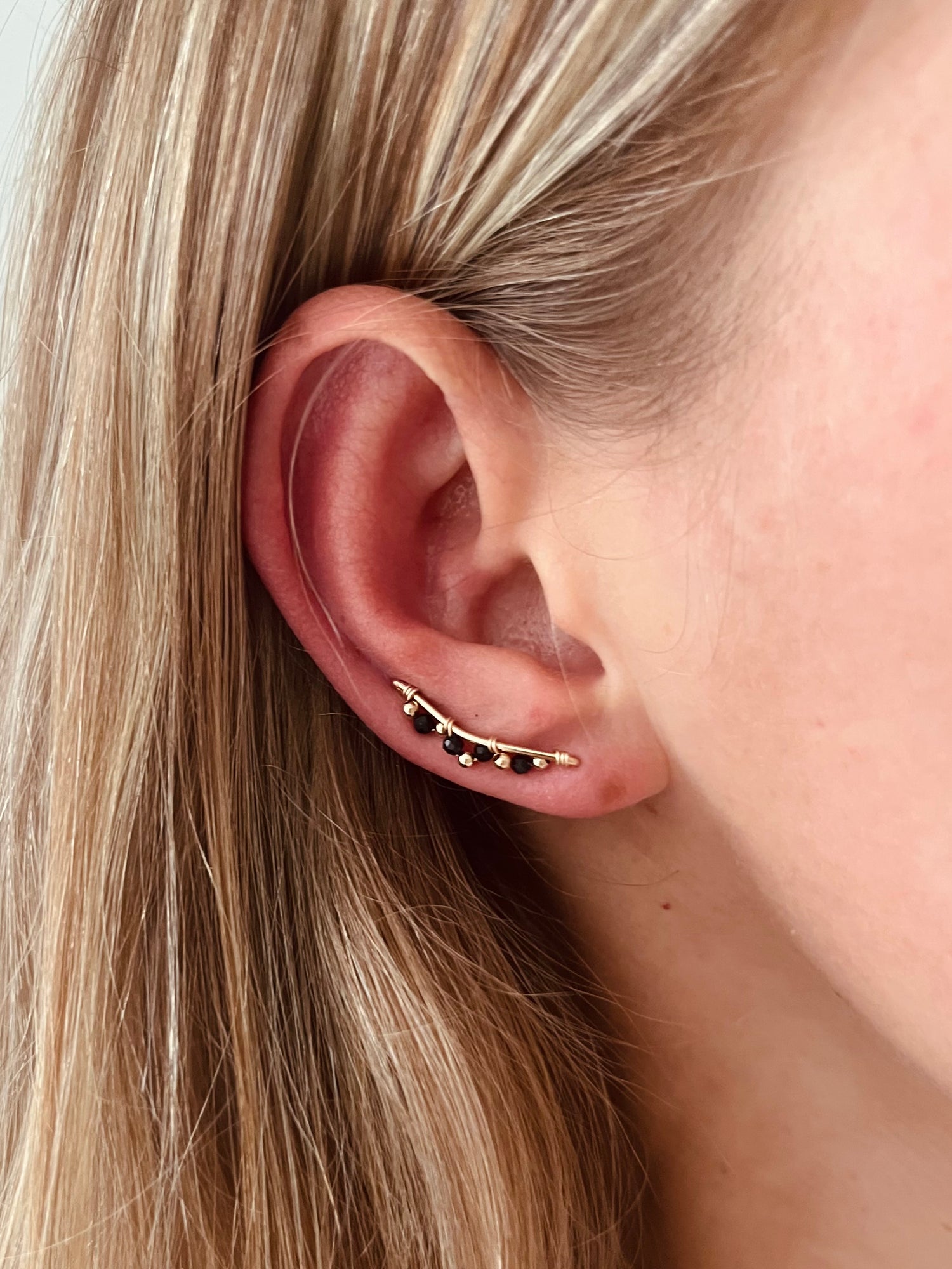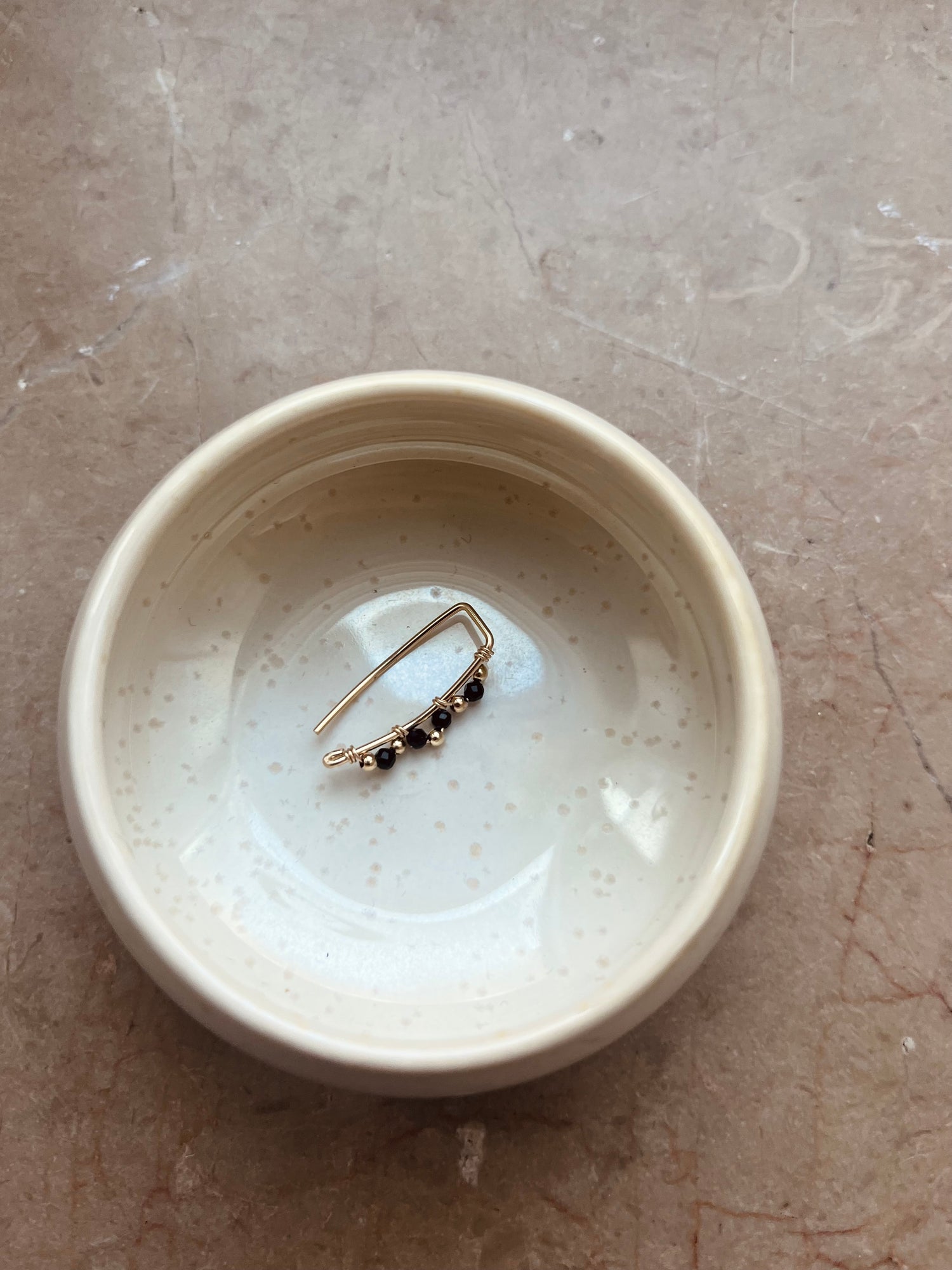 La boucle d’oreille Olga en GoldFilled et pierres fines résiste à l’eau, au savon et au parfum.